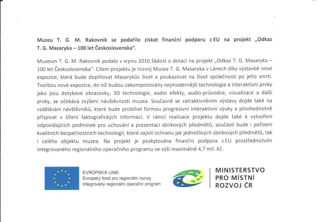 Aktuálně 24.2.2026 - Přednáška Klubu cesty za poznáním: „Odkaz a dědictví čs. legií: význam, mýty, osudy jednotlivců a historické zhodnocení“ Nové Strašecí 7.3.2026 - Den s TGM 2026 Lány od 11.3.2026 - Jarní vzdělávací cyklus 2026 ve spolupráci s Městskou knihovnou v Rakovníku Rakovník, knihovna 18.3.2026 - Přednáška Mgr. Lenky Šmídové s názvem Zvyky v období jara a Velikonoc Lány, Za Školou 200 24.3.2026 - Přednáška s názvem „Národní archiv: největší pokladnice české historie – úkoly, každodenní práce a unikátní archiválie“ Nové Strašecí 29.3.2026 - Tradiční velikonoční prodejní výstava Lány 1.4.2026 - 14. ročník tradiční soutěže O nejhezčího a nejchutnějšího velikonočního beránka Nové Strašecí Tvořivé a hravé hledání velikonočních kraslic Nové Strašecí Muzeum Rakovník se uzavřelo dočasně veřejnosti Rakovník, Žižkovo náměstí 1 Projekt Muzeum Alice G. Masarykové Lány Výstavy Výstava obrazů Adély Marvanové O životě v jeskyni - do 10.4.2026 Galerie Samson Cafeé Pozvánka na výstavu Velikonoce v lidových tradicích - do 14.4.2026 Jesenice Výstava výtvarných prací žáků 2. stupně ZŠ v Novém Strašecí „ROSTEME do krásy světa“ - do 10.5.2026 Nové Strašecí Výstava Z jednoho kořene – Jana & Jan - do 27.2.2026 Galerie Samson Cafeé Rakovník Plastiky RAKO ze sbírky Josefa Petra - do 22.3.2026 Nové Strašecí Pozvánka na dlouhodobou výstavu Drátenictví Jesenice Kulturní akce Jarní vzdělávací cyklus 2026 ve spolupráci s Městskou knihovnou v Rakovníku Rakovník, knihovna Přednáška Klubu cesty za poznáním: „Odkaz a dědictví čs. legií: význam, mýty, osudy jednotlivců a historické zhodnocení“ Nové Strašecí Přednáška s názvem „Národní archiv: největší pokladnice české historie – úkoly, každodenní práce a unikátní archiválie“ Nové Strašecí Tvořivé a hravé hledání velikonočních kraslic Nové Strašecí 14. ročník tradiční soutěže O nejhezčího a nejchutnějšího velikonočního beránka Nové Strašecí Den s TGM 2026 Lány Tradiční velikonoční prodejní výstava Lány Přednáška Mgr. Lenky Šmídové s názvem Zvyky v období jara a Velikonoc Lány, Za Školou 200 Expozice Prezident odešel