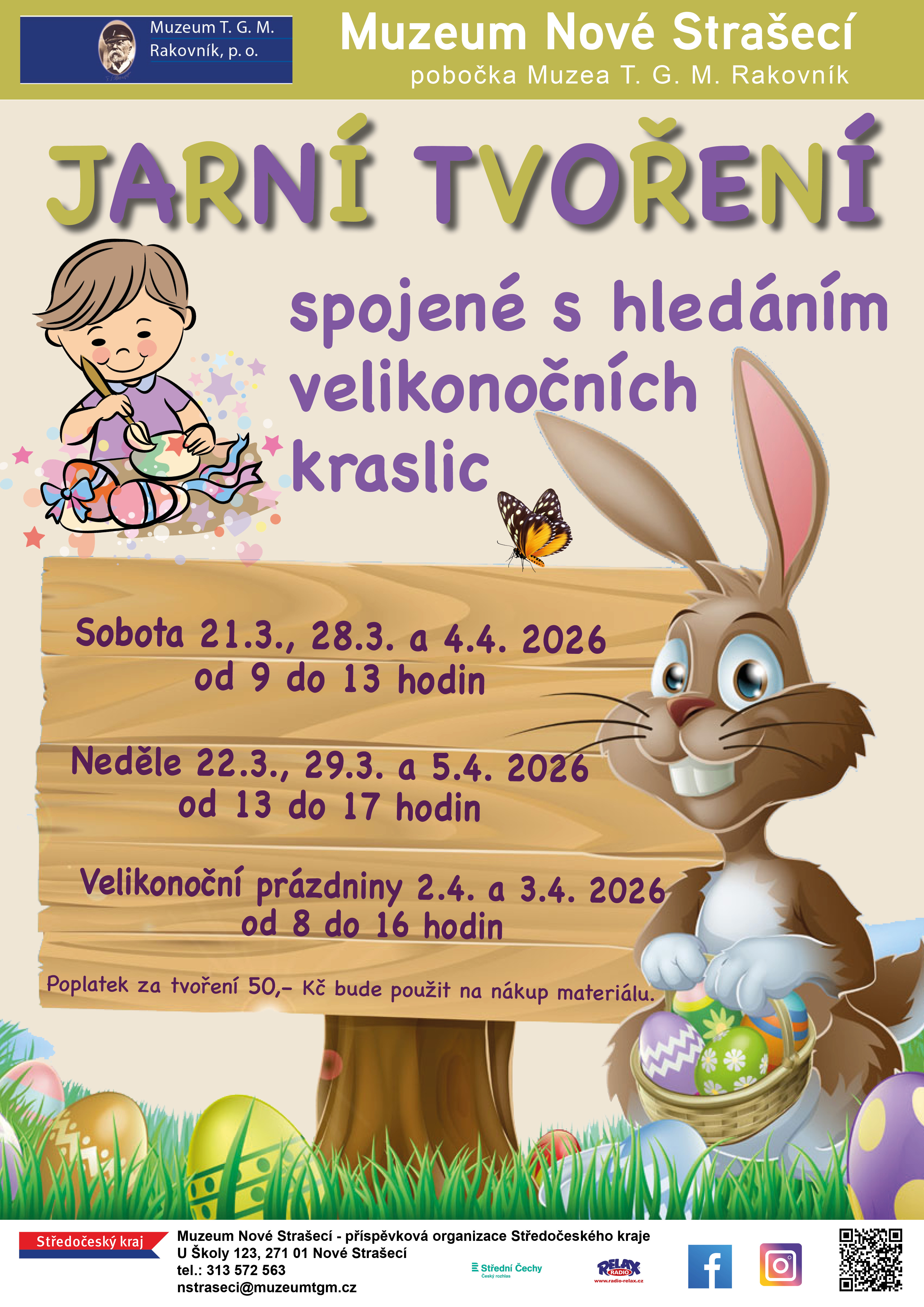 Muzeum Nové Strašecí srdečně zve všechny příznivce tvoření, zejména rodiče s dětmi, na oblíbené Jarní tvoření. Přijďte si zasít osení, vyrobit velikonoční dekorace a vydat se na napínavou pátrací akci po kraslicích, které po celém muzeu poschovával velikonoční zajíček.