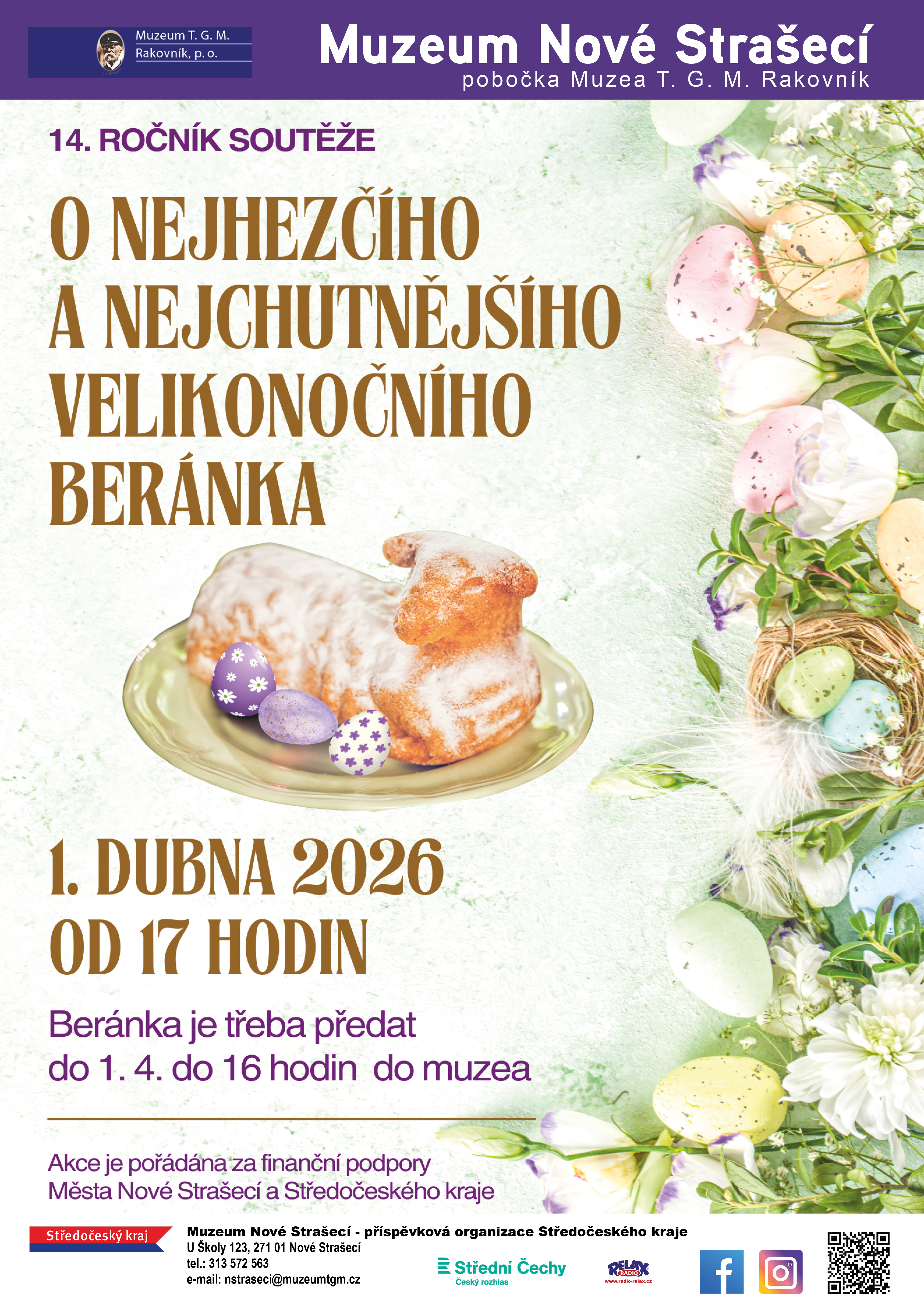 Muzeum Nové Strašecí vás srdečně zve na 14. ročník tradiční soutěže O nejhezčího a nejchutnějšího velikonočního beránka, která se uskuteční ve středu 1. dubna 2026 od 17 hodin.