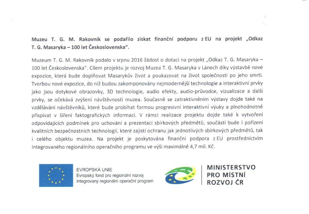 Muzeum T. G. M. Rakovník se podařilo získat finanční podporu z EU