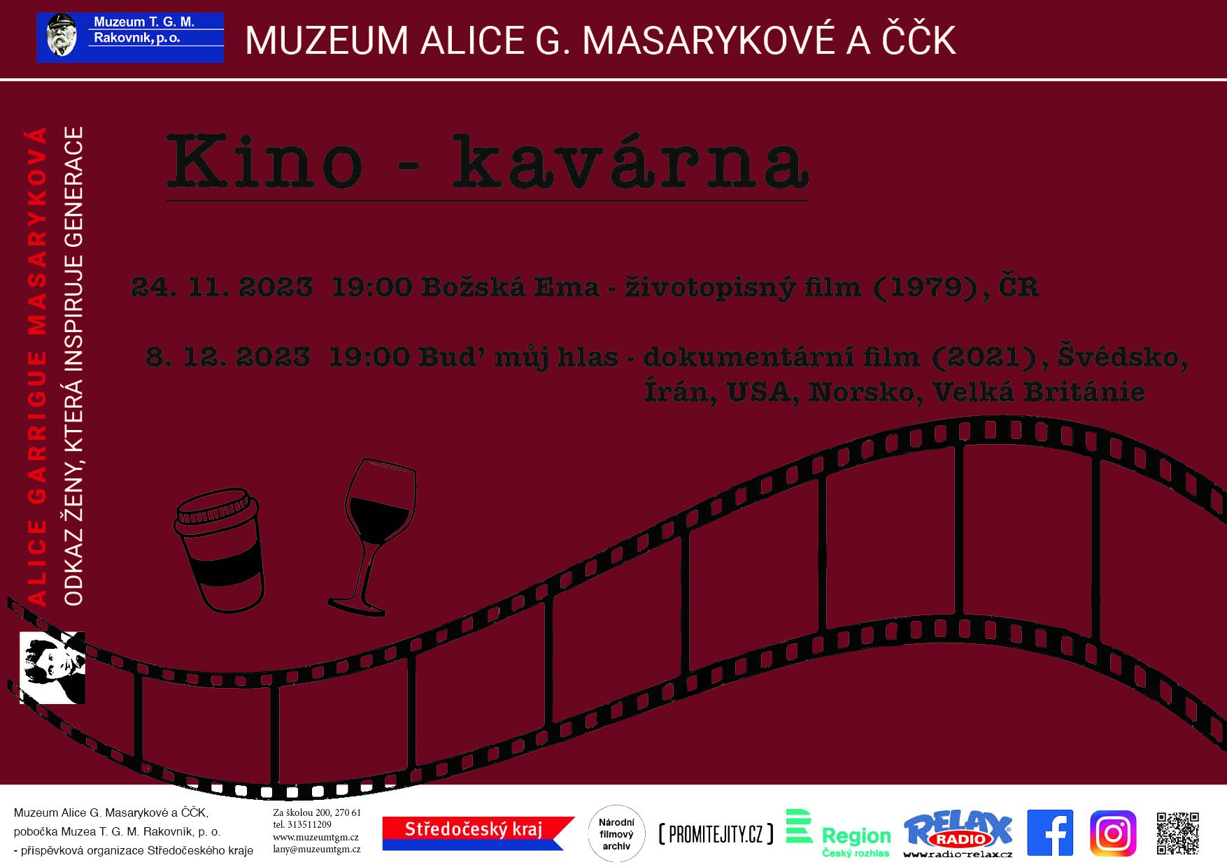 Tato kinokavárna se uskuteční v pátek 24. 11. 2023 od 19 hodin v Muzeu Alice G. Masarykové a ČČK v Lánech, Za Školou 200.