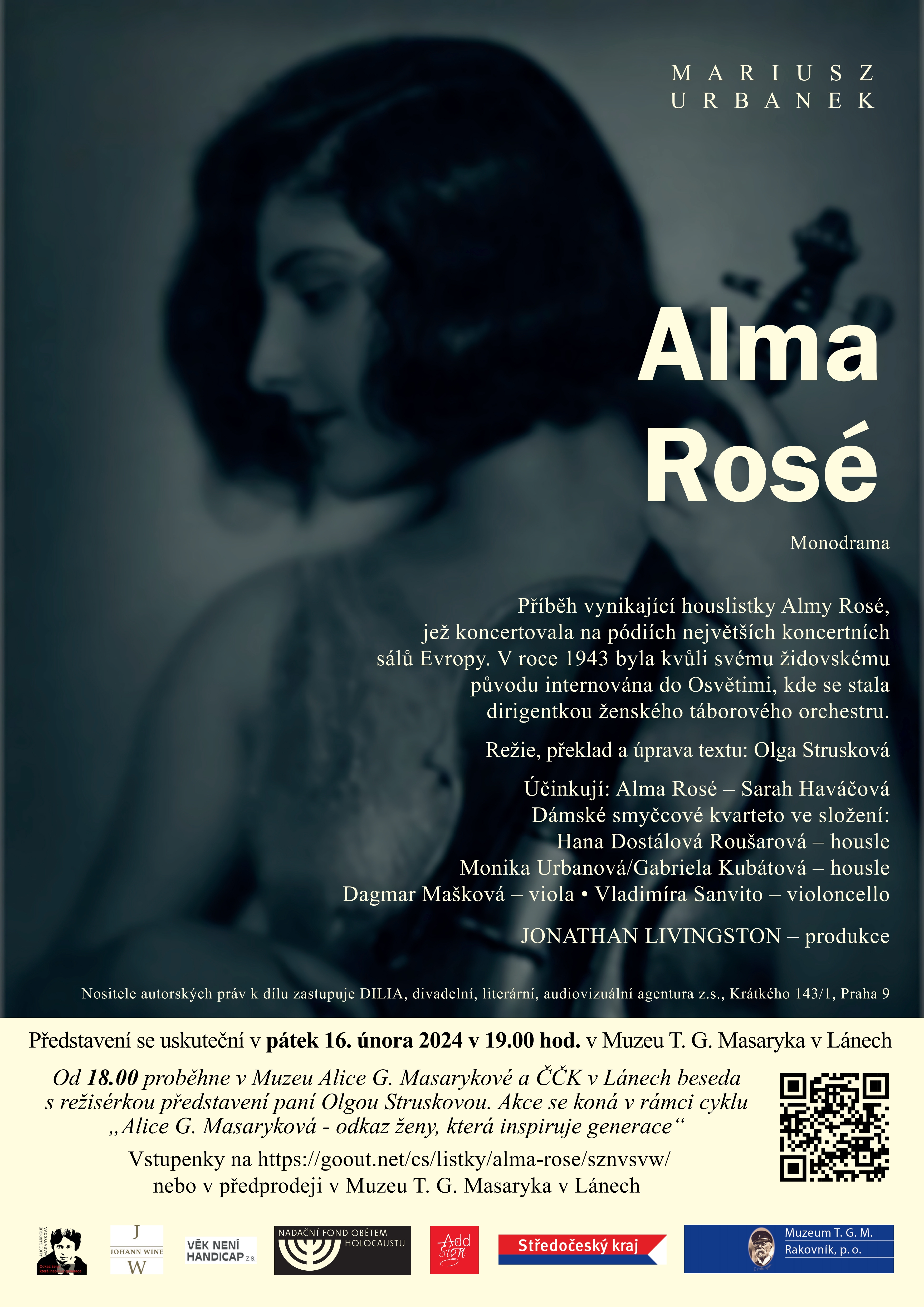 V pátek 16. února 2024 od 19 hodin se v Muzeu T. G. Masaryka v Lánech uskuteční komorní divadelní představení o osudu talentované židovské hudebnice Almy Rosé,