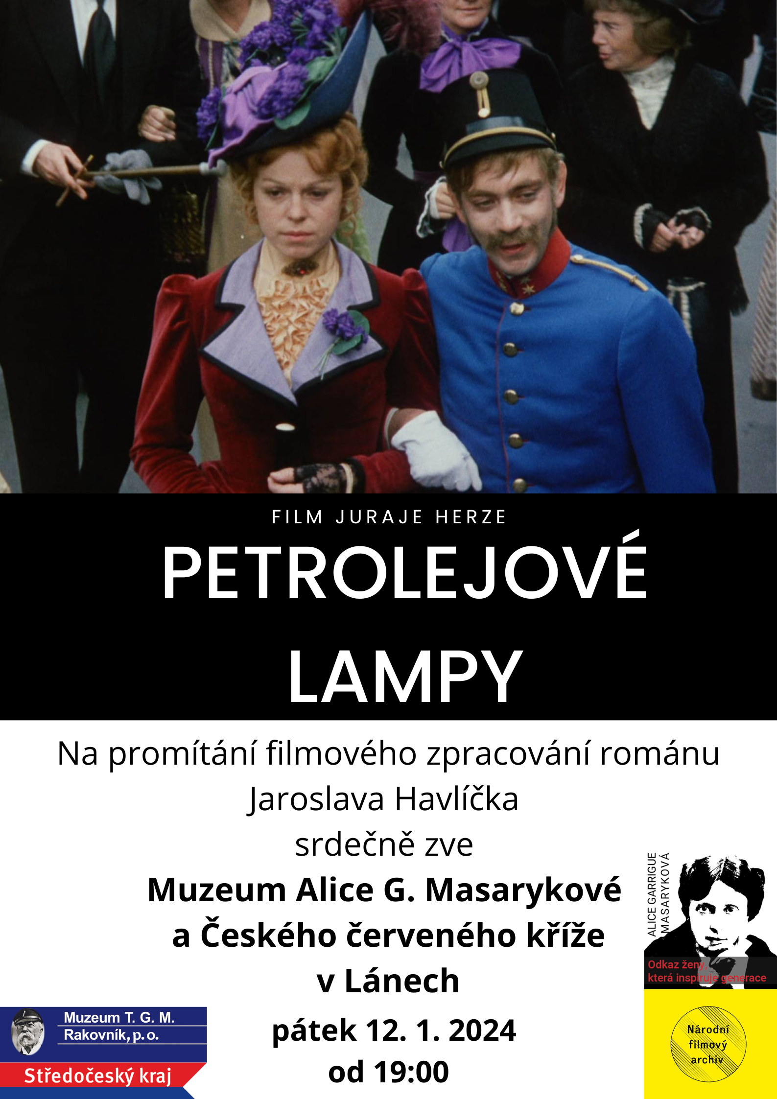 Kinokavárna se uskuteční v pátek 12. 1. 2024 od 19 hodin v Muzeu Alice G. Masarykové a Českého červeného kříže v Lánech (Za Školou 200).